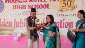 भएको छ। पाँच दशकको लामो शैक्षिक यात्रालाई स्मरण गर्दै विद्यालय परिवार, पूर्व विद्यार्थी, अभिभावक, स्थानीय समाजका अग्रजहरू तथा विशिष्ट अतिथिहरूको उपस्थितिमा कार्यक्रम सम्पन्न भएको छ।मुण्डाकोठी उच्च विद्यालयले आफ्नो गौरवशाली 50 औँ स्थापना दिवस उत्साह, उमङ्ग र ऐतिहासिक महत्त्वका साथ मनाएको छ। उक्त स्वर्ण जयन्ती समारोहमा प्रमुख अतिथिको रुपमा गोर्खाल्याण्ड क्षेत्रीय प्रशासनको डेपुटी चेयरम्यान एंव क्षेत्रीय सभासद राजेस चौहान उपस्थित रहेका थिए। विशिष्ट अतिथिको रुपमा सभासद नुरी शेर्पा, पूर्व सभासदहरु महेन्द्र प्रधान र रबिन्द्र लामा, एआई, एसआई, पूर्व शिक्षक शिक्षिकाहरु, पञ्चायत प्रधान लगायत अन्यहरु उपस्थित रहेका थिए। कार्यक्रममा स्वागत सम्भाषण शान्ति राईले राखेकी थिइन् भने मुण्डाकोठी विद्यालयको पृष्ठभूमि र इतिहास विषयमा प्रधान अध्यापिका सुधा राईले विस्तृत जानकारी गराएकी थिइन्। कार्यक्रममा बीके देवान, एनएल राई लगायत पूर्व शिक्षकहरु र पूर्व विद्यार्थीहरुलाई सम्वर्ध्दना जनाइएको थियो। यसको साथै प्रमुख, विशिष्ट अतिथिहरु, विभिन्न विद्यालयका शिक्षक शिक्षिकाहरुलाई स्मृति चिनो प्रदान गरेर सम्मान जनाइएको छ। सबैलाई प्रधान अध्यापिका, प्रमुख अतिथि र विशिष्ट अतिथिहरुका बाहुलीबाट सम्मान जनाइएको छ। कार्यक्रममा विभिन्न सांस्कृतिक र सांगीतिक कार्यक्रमहरु आयोजना गरिएको थियो। कार्यक्रममा प्रमुख अतिथिको रुपमा उपस्थित जीटीएको डेपुटी चेयरम्यान राजेस चौहानले वक्तव्य राखेका थिए। उल्लेखनीय छ, मुण्डाकोठी उच्च माध्यमिक विद्यालयको स्थापना सन् 1975 मा भएको थियो भने यस विद्यालयले आफ्नो गौरवशाली 50 वर्षको यात्रा पूरा गरेको छ। यस स्वर्ण जयन्ती कार्यक्रमले विद्यालयले विगत 50 वर्षमा हाँसिल गरेको शैक्षिक उपलब्धि, सामाजिक योगदान र स्थानीय समुदायलाई दिएको पहिचानलाई विशेष रूपमा उजागर गऱ्यो। विद्यार्थीहरूका सांस्कृतिक प्रस्तुति, सम्मान समारोह, वक्तव्य तथा विद्यालय विकास सम्बन्धी योजनाहरूले कार्यक्रमलाई अझै अर्थपूर्ण बनाएको थियो। मुण्डाकोठी उच्च विद्यालय यस क्षेत्रको मात्र होइन, सम्पूर्ण समुदायको गौरव बनेको छ। यहाँबाट शिक्षित हजारौँ विद्यार्थी आज विभिन्न क्षेत्रहरूमा चम्किएर समाज र राष्ट्रको सेवामा जुटिरहेका छन्। 50 वर्षको समर्पण, अनुशासन र निरन्तर प्रगतिले यो विद्यालयलाई क्षेत्रकै उत्कृष्ट शैक्षिक संस्थामध्ये एक बनाएको छ। यस स्वर्ण जयन्ती समारोह विषयमा पत्रकारहरुसित कुराकानी गर्दै मुण्डाकोठी उच्च विद्यालयको प्रधान अध्यापिका सुधा राईले विद्यालयको गौरवमय स्वर्ण जयन्ती समारोहमा उपस्थित र सहयोग गर्ने सबैप्रति आभार प्रकट गरेकी छन्।
