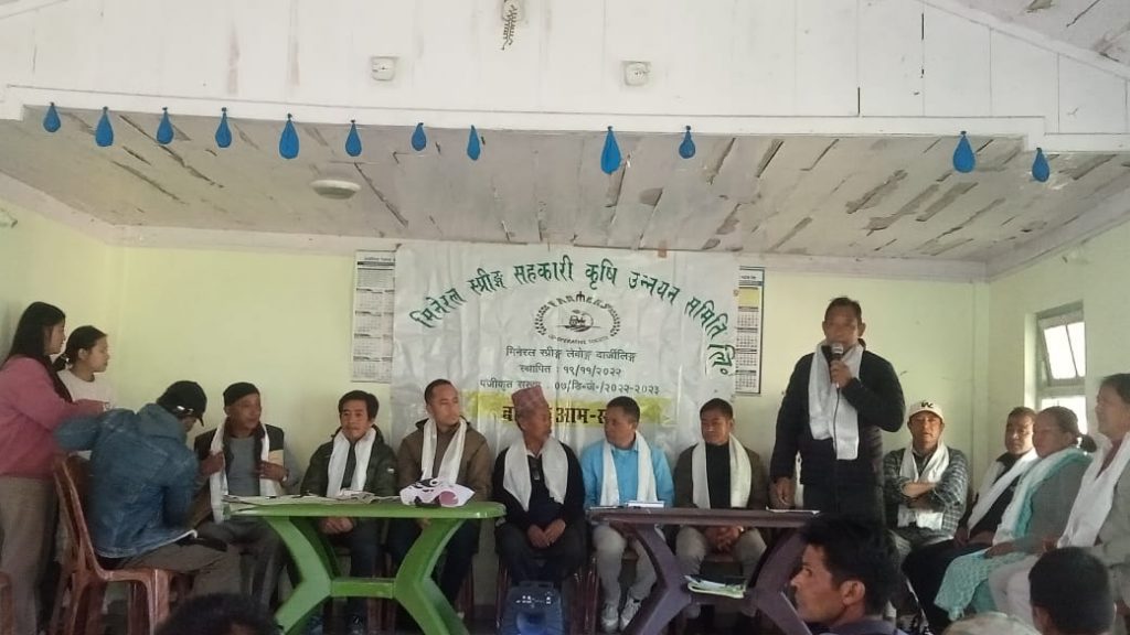 निम्ति 1 करोड रुपियाँ ऋण वितरण गरिने लक्ष्य रहेको पनि जनाएका छन्। समितिले गरेको विभिन्न कार्यहरूको उल्लेख गर्दै मौरी पालन अनि मह उत्पादन विषयमा आइ भी सहकारी समितिसित सम्झौता भएको अनि मह बिक्री गरी आर्थिक लाभ प्राप्त भएको पनि जनाए। कोलकातामा भएको सरस मेलामा स्थानीय सहकारी समितिले पनि भाग लिएको औं मह, चियापत्ती आदि बिक्री गरिएको जानकारी दिए। उनले सरकारद्वारा प्रदान गरिने भनिएको जैविक प्रमाण पत्र प्राप्तिको निम्ति सबैले आवेदन गर्ने सुझाव पनि दिए भने सबैको सहभागिता, संलग्नता, सहकार्यमा नै समितिले उन्नति गर्नेछ भनी अवगत गराए। सभालाई सञ्जय राईले सञ्चालन गरेका थिए।