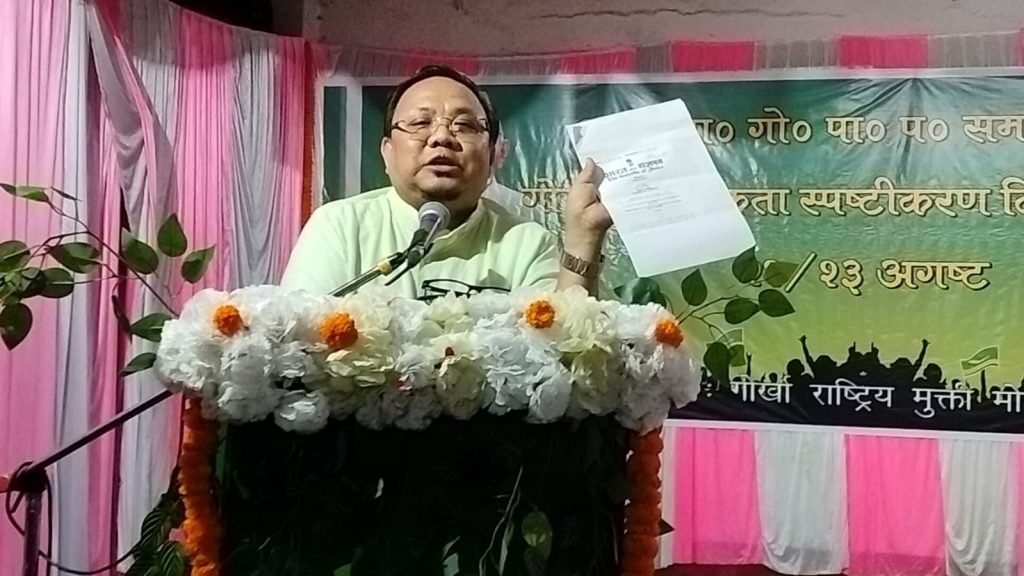 (निसं)ः भारत देशका गोर्खाहरूको निम्ति 22 अगस्त अनि 23 अगस्ट महत्त्वपूर्ण दिन हो । 22 अगस्त 1988 को दिन गोर्खा अकर्ड भएको ऐतिहासिक दिन हो, यो भारतीय राजनीतिमा पनि महत्त्वपूर्ण दिन हो। यो खेलाइची विषय होइन, भारत सरकारलाई सुवास घिसिङले घुड़ा टेकाएको दिन हो। खरसाङ्मा सम्पन्न भएको गोर्खा अकर्ड डे एवं नागरिकता स्पष्टिकरण दिवस कार्यक्रममा प्रमुख रुपमा उपस्थित दार्जीलिङ्का विधायक एवं गोरामुमो सेक्रेटेरी जेनरल निरज जिम्बाले उक्त मन्तव्य आफ्नो वक्तव्य राख्दै प्रकट गरेका हुन्। जिम्बाले अघि भने, दार्जीलिङ गोर्खा हिल काउन्सिल गोर्खाहरूको एउटा खतियन भएको किपट हो, यो क्षेत्र बंगालबाट चर्काइएको हो, भारतको संविधान अन्तर्गत धारा 243(एम) मा सुरक्षित छ यो क्षेत्र, हामी सुरक्षित छौँ। यो सुवास घिसिङ्को योगदान हो । तिनले 2007 मा छैटौँ अनुसूचीलाई विरोध गरेर गल्ती गरिएको दावी गर्दै भने, 2007 मा जुन व्यक्तिले विरोध गरेका थिए, आज उनै व्यक्तिले भारतको गृहमन्त्रालयलाई हामीले गल्ती गर्यौँ छैटौँ अनुसूची सही थिएछ भनेर भन्दैछन्। सुवास घिसिङले गोर्खाहरूको निम्ति सबै विषय एउटा व्यवस्थित ढङ्गले निभाएका थिए तर यहाँकाहरूले बुझ्नु सकेनन्। अब समय टाढ़ो छैन तपाईं र हाम्रो निम्ति राम्रै हुन्छ, त्यो हाम्रै हुन्छ सुर्ताउनु पर्दैन । जसले बिगारे तिनीहरूलेनै अहिले सही हो भन्दैछन्, यो हाम्रो ठूलो जीत हो। अब बीजेपीको पनि समय आयो वार्ता मात्र गरेर हुँदैन, न्याय दिनु पर्छ, हामीलाई न्याय चाहिन्छ। विधायकले दावी गर्दै भने, गृहमन्त्रीले गोर्खाहरूको निम्ति राम्रो गृहकार्य गरेको छ। दिल्लीको धेरै कुरा छ, अहिलेनै भन्नु हुँदैन तर राम्रो हुँदैछ। पार्टी अध्यक्ष मन घिसिङ र हामीले मिलेर एउटा पुल निर्माण गरेका छौँ, केवल गोर्खा जातिको उन्मुक्तिको निम्ति अरु कसैले गरेका छैनन्, केवल गोरामुमोले आफ्नो भूमिका निभाउँदैछ र सही भूमिका निभाउँदैछ।