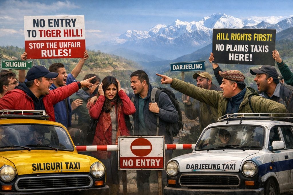 सिलगढी-दार्जीलिङ पहाड क्षेत्रका ट्याक्सी चालकहरूबीच लामो समयदेखि चल्दै आएको विवाद समाधान हुन नसक्दा यात्रु ट्याक्सी सेवा प्रभावित हुने संकेत देखिएको छ। गोरूहरूको सीङ जुझाइमा बाछा अथवा यात्रुहरू नै मर्कामा पर्नेछन्। समतल क्षेत्रका ट्याक्सी चालकहरूले प्रशासनसँग पटक–पटक माग राखे पनि हालसम्म ठोस समाधान नआएको बताइएको छ। समतल क्षेत्रका ट्याक्सी चालकहरू पछिल्ला दिनहरूमा टाइगर हिलतर्फ सवारी सञ्चालन गर्न नपाएको कारण आर्थिक समस्यामा परेका छन्। पर्यटक मौसम सुरु भइसकेको अवस्थामा, विशेषगरी क्रिसमसको समय नजिकिँदै गर्दा टाइगर हिल जस्ता प्रमुख पर्यटकीय गन्तव्यमा सवारी नजान पाउँदा उनीहरूको आम्दानीमा प्रत्यक्ष असर परेको छ।